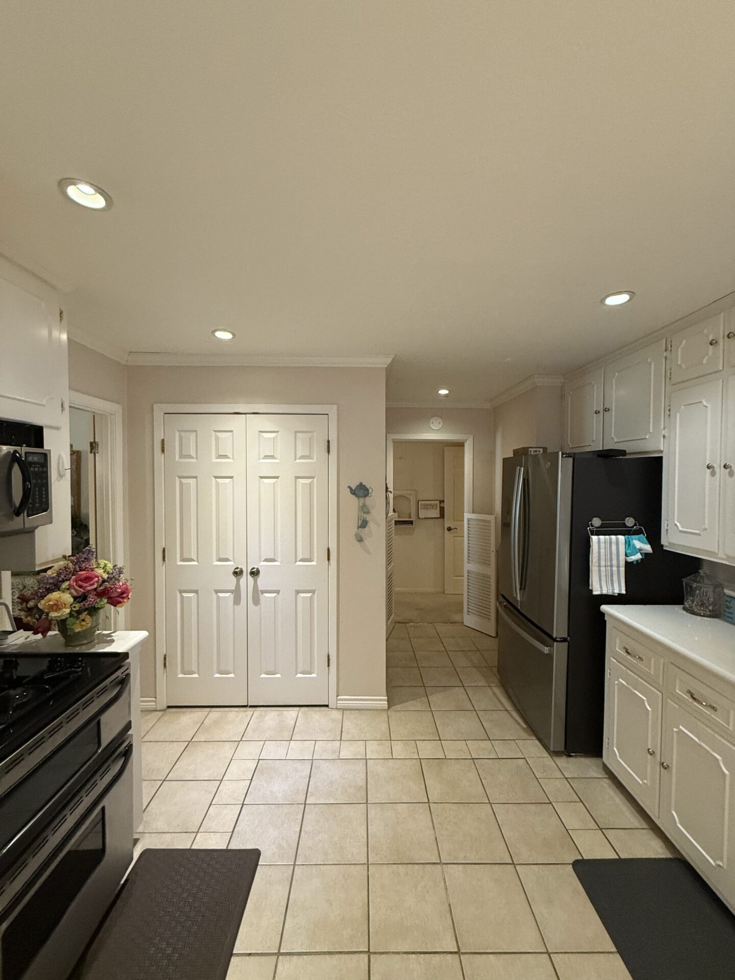 Susan loves cooking, baking, and crafting. We completely rearranged her kitchen & den area into a large kitchen with adjacent butler’s pantry / utility room. Tons of drawers, specialty pull-outs, undercabinet lighting, an appliance lift, and a solid surface backsplash make this space truly tailored to her needs. We removed some interior closets to create a true dining area, and added architectural detail with a custom fireplace surround and transom windows.